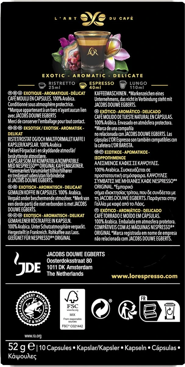 L’OR Espresso Limited Creations Laos Bolaven Koffiecups – Intensiteit 7/12 – 10 X 10 Capsules