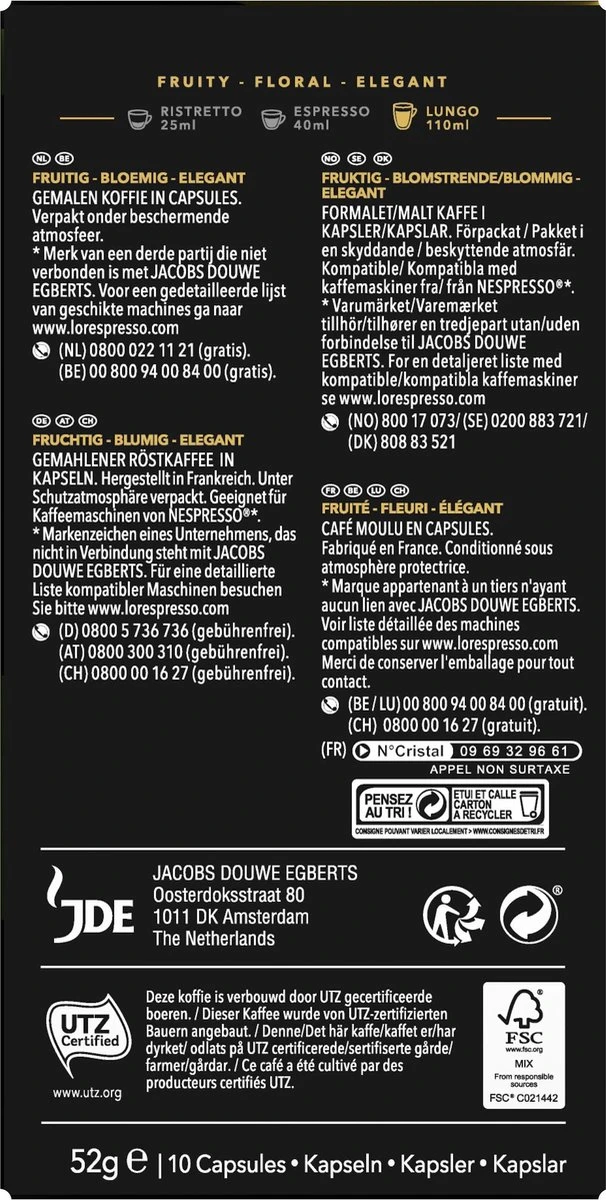 L’OR Lungo Elegante Koffiecups – Intensiteit 6/12 – 10 X 10 Capsules